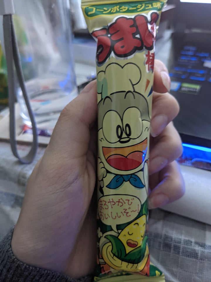 The texture of this makes my skin crawl, it's like a cheese puff kinda and the flavour is just creamed corn. I'd eat it again if offered but I wouldn't buy any and I rate it 3/5.